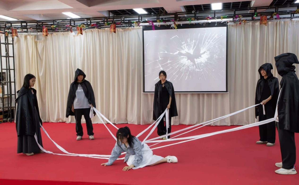 公司本次选取的剧本结合老员工的生活实际,讲述了主人公晓妍在大学期间从讨好型人格逐渐觉醒,学会爱自己、尊重自己的故事。晓妍初入大学时,怀着“人见人爱”的愿望,努力迎合他人,逐渐陷入讨好他人的漩涡。她不断为室友、朋友、恋人、老师的需求妥协,忽视了自己的感受和需求,内心逐渐失衡。在一次次的内心挣扎中,晓妍与自己的内心对话,逐渐意识到自己一直在压抑真实的自我。最终,她学会了勇敢表达自己的想法,拒绝不合理的要求,重新找回了自我。通过这一过程,晓妍明白了“爱人先爱己”的道理,学会了接纳自己的不完美,倾听内心的声音,最终破茧成蝶,走向新生。此次表演公司取得了第四名的佳绩。