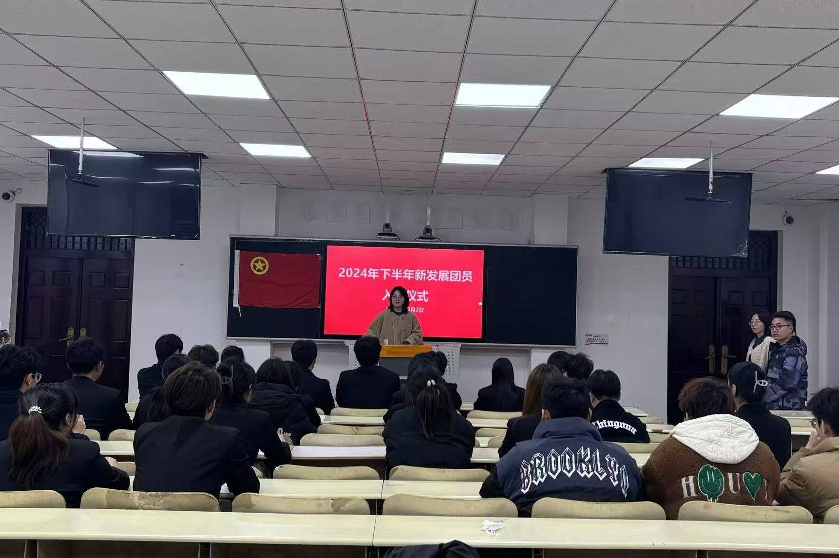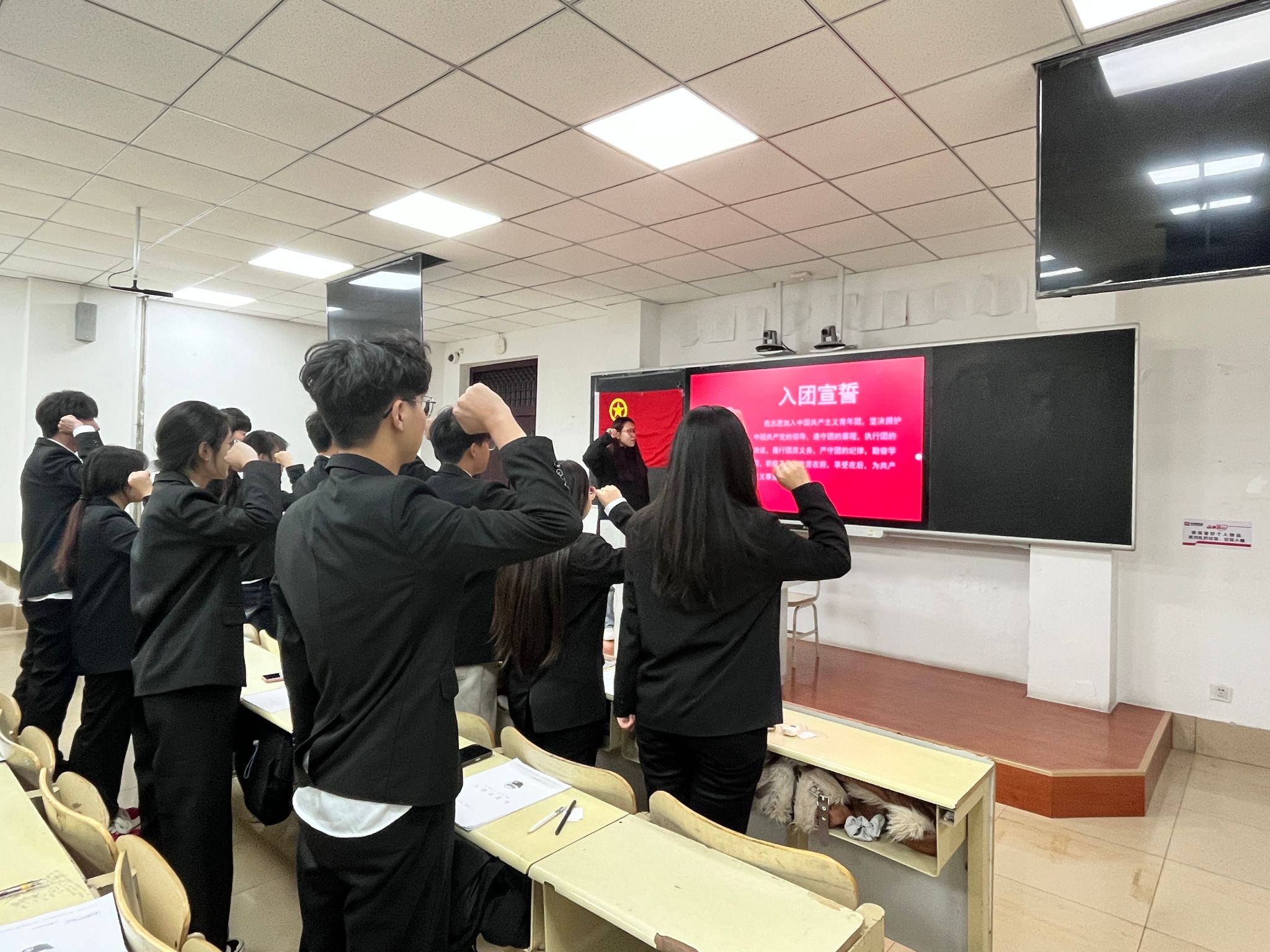 在领誓人刘雪同学的带领下,全体新团员面向团旗庄严宣誓,誓言铿锵有力,表达了他们对共青团组织的无限忠诚与为共产主义事业奋斗的坚定决心。